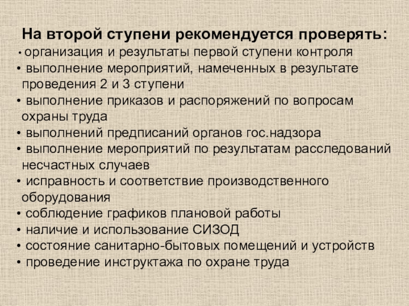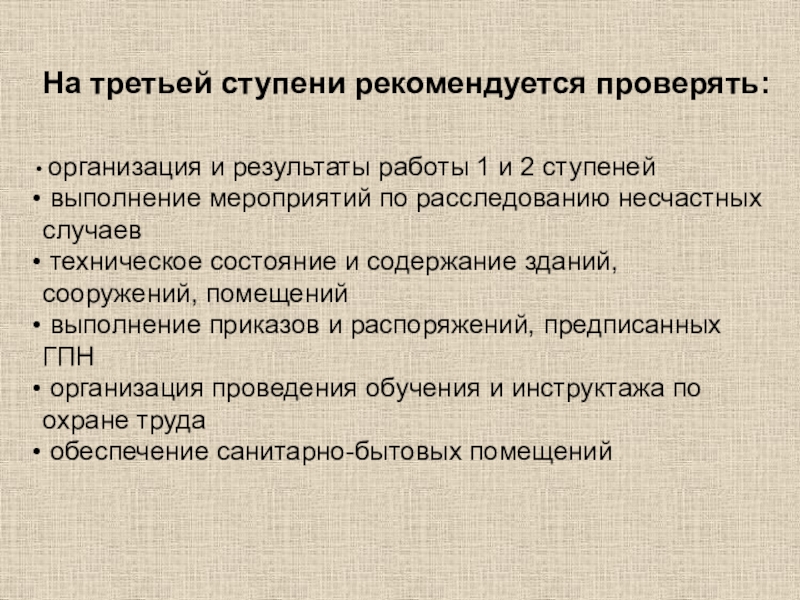 выполнение мероприятий, намеченных в результате проведения 2 и 3 ступени