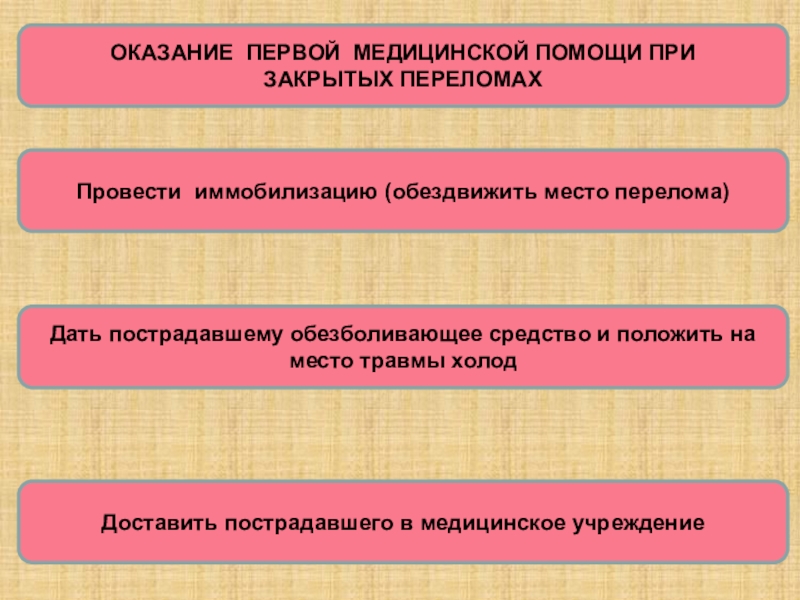 Дать пострадавшему обезболивающее средство и положить на место травмы холод