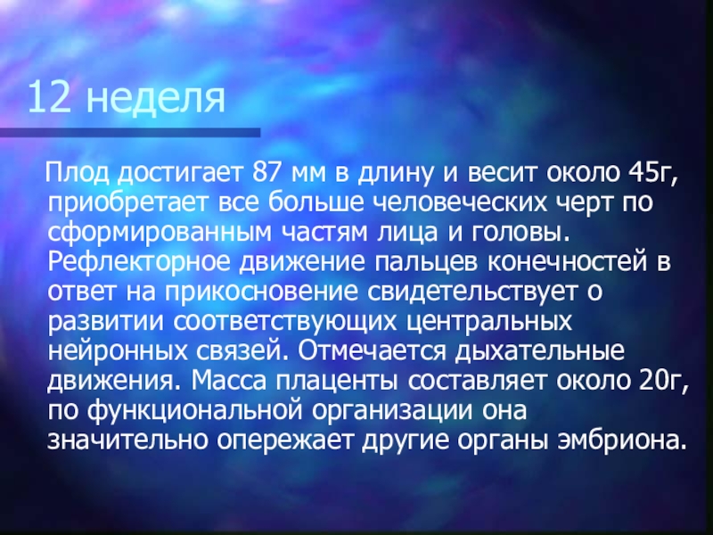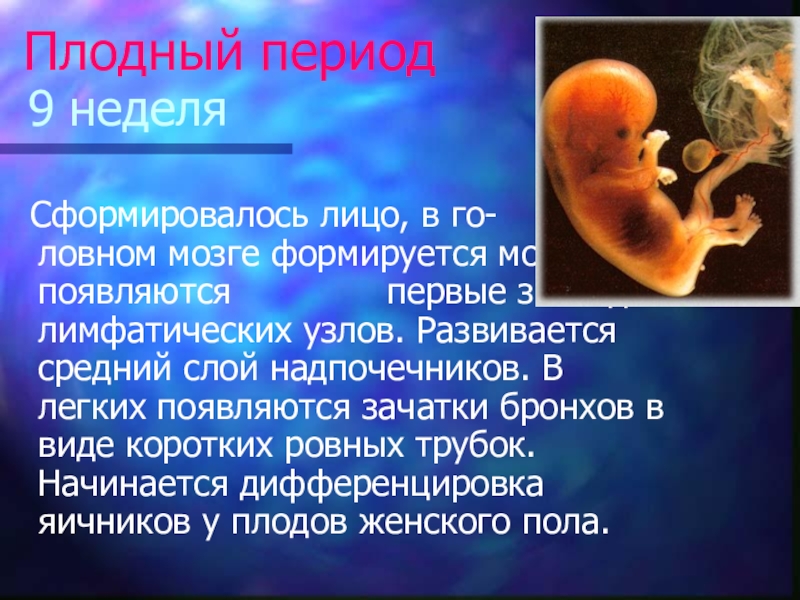 После формирования плаценты заканчивается эмбриональный и начинается плодный период.