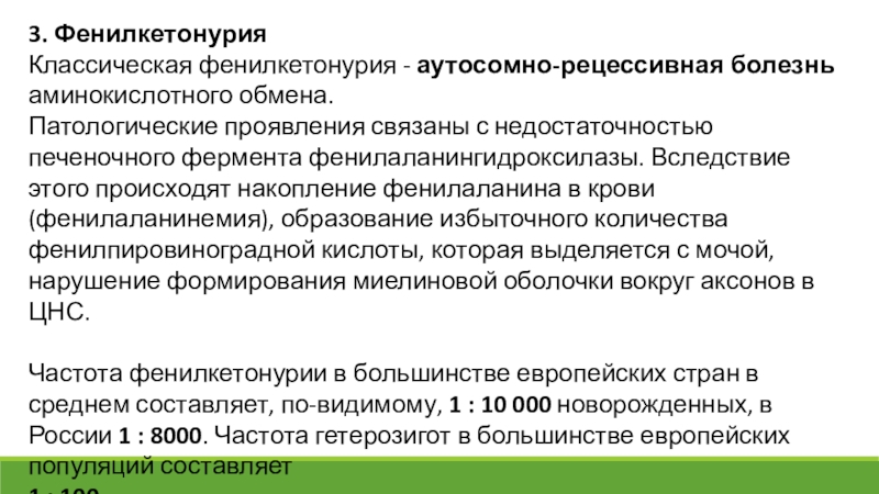 Классическая фенилкетонурия - аутосомно-рецессивная болезнь аминокислотного обмена.