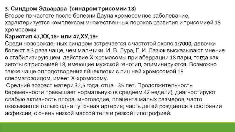 Слайд 293. Синдром Эдвардса (синдром трисомии 18)