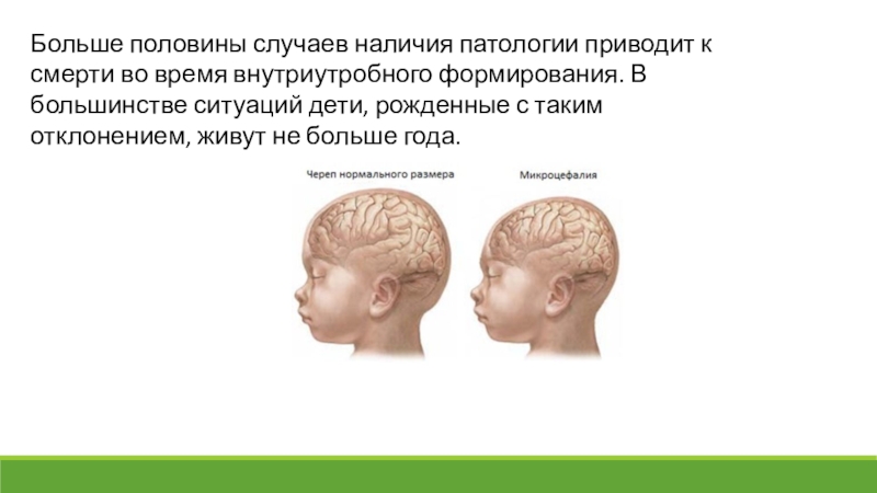 Слайд 30Больше половины случаев наличия патологии приводит к смерти во время внутриутробного