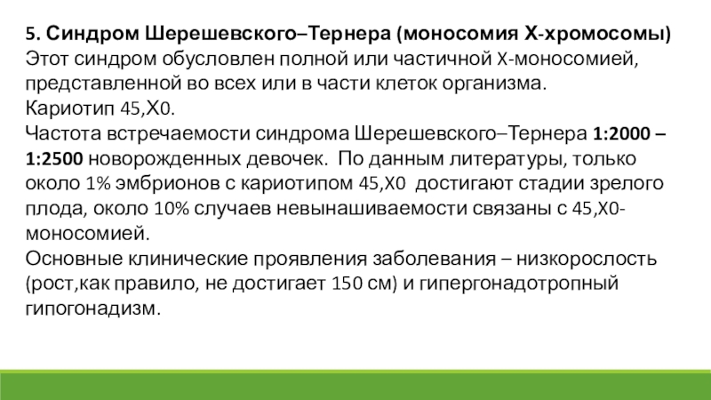 Слайд 355. Синдром Шерешевского–Тернера (моносомия Х-хромосомы)