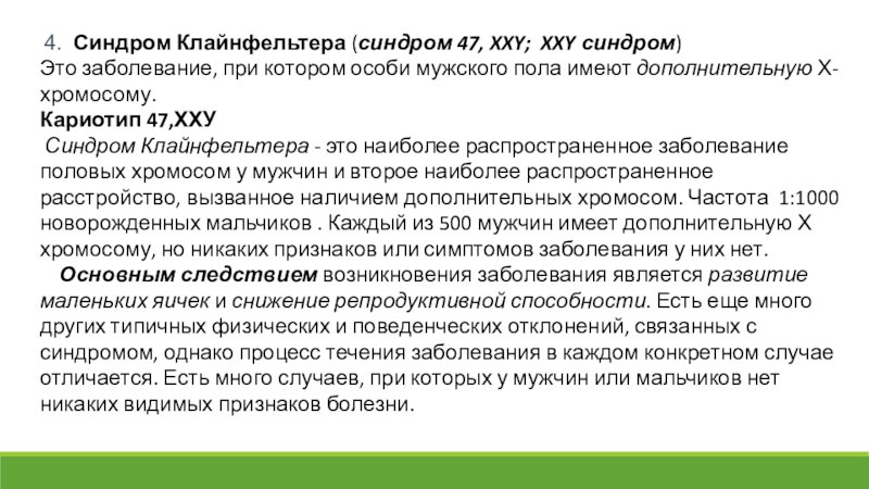 Слайд 32 4. Синдром Клайнфельтера (синдром 47, XXY; XXY синдром)