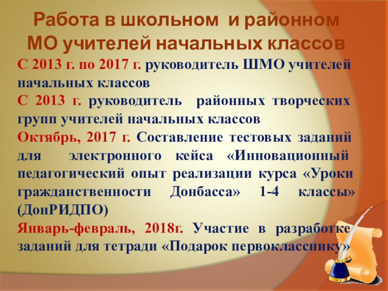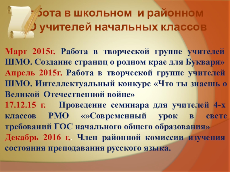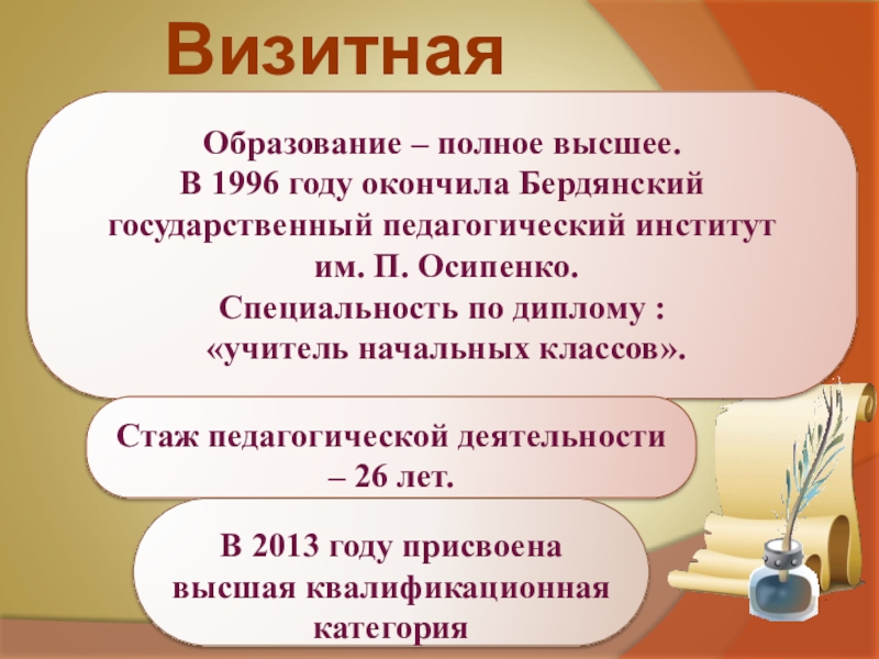 Стаж педагогической деятельности – 26 лет.