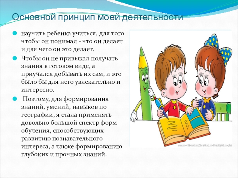 Поэтому, для формирования знаний, умений, навыков по географии, я стала применять довольно большой спектр форм обучения, способствующих развитию познавательного интереса, а также формированию глубоких и прочных знаний.
