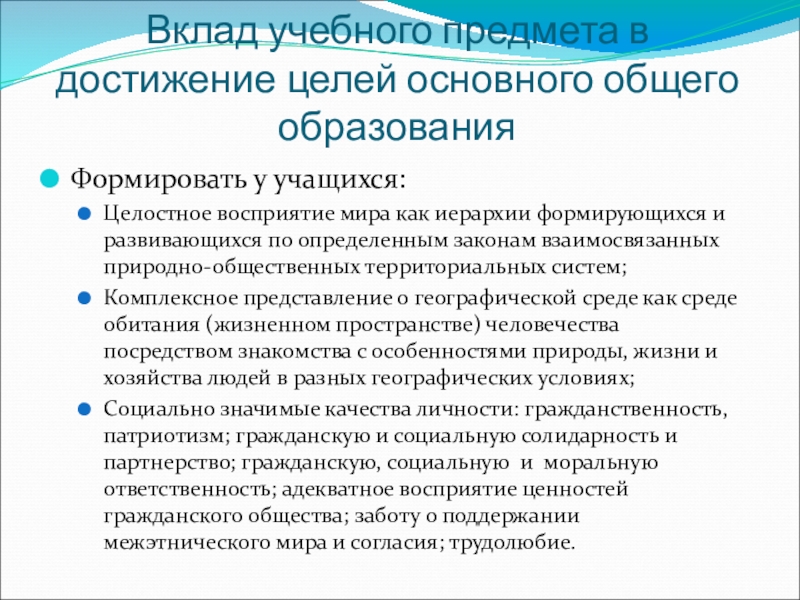 Слайд 3Вклад учебного предмета в достижение целей основного общего образования