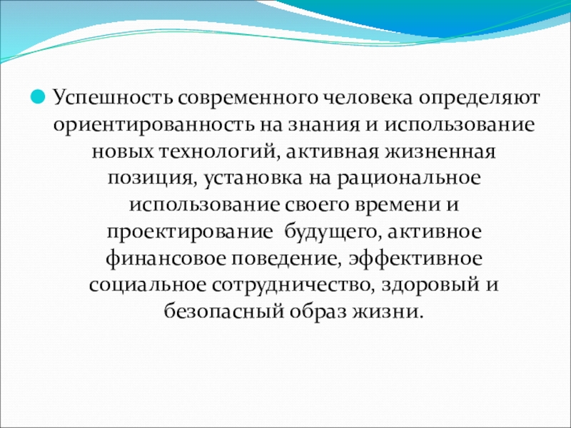 Слайд 2Успешность современного человека определяют ориентированность на знания и использование новых технологий,