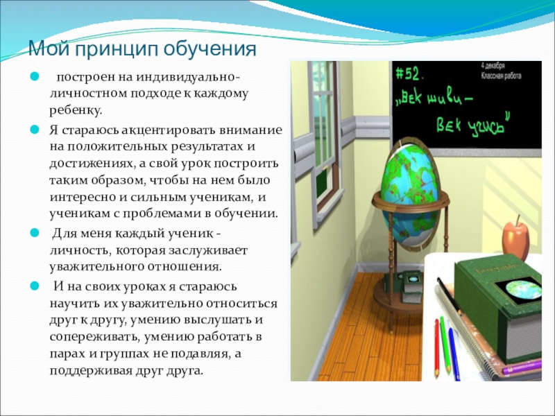 Для меня каждый ученик - личность, которая заслуживает уважительного отношения.