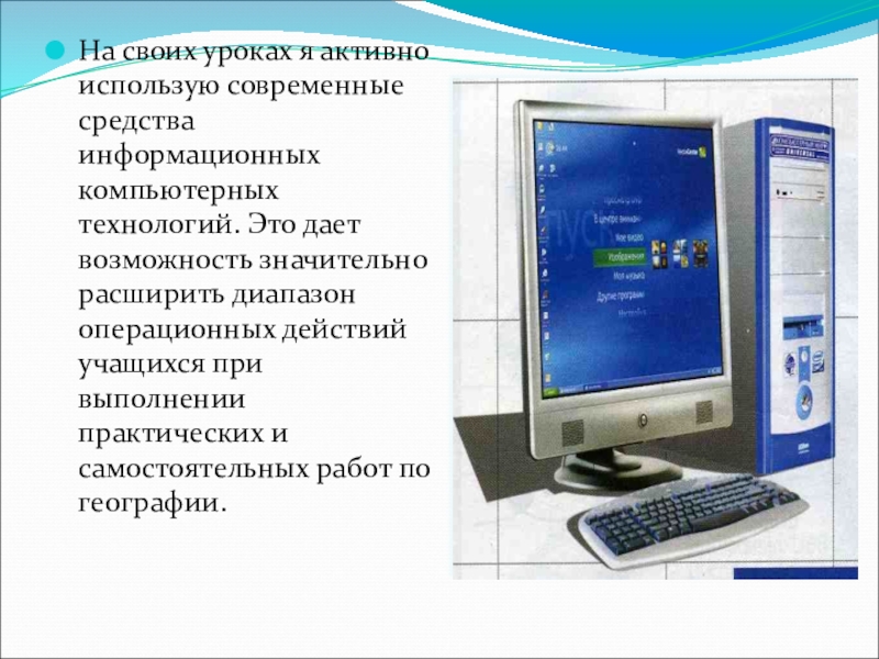 Слайд 20На своих уроках я активно использую современные средства информационных компьютерных технологий.
