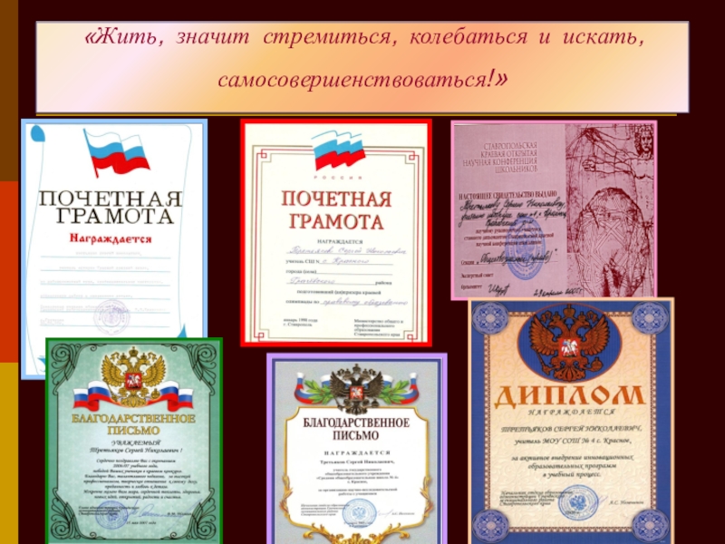 Слайд 39«Жить, значит стремиться, колебаться и искать, самосовершенствоваться!»