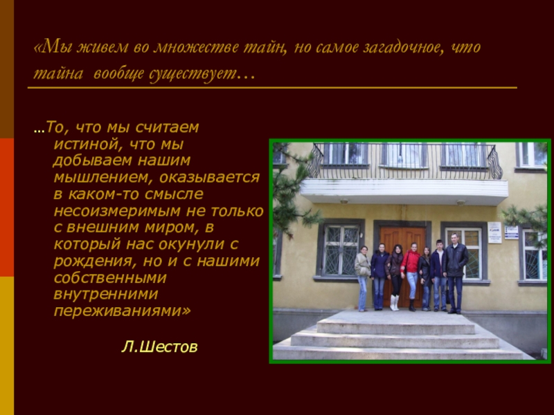 Слайд 41«Мы живем во множестве тайн, но самое загадочное, что тайна вообще