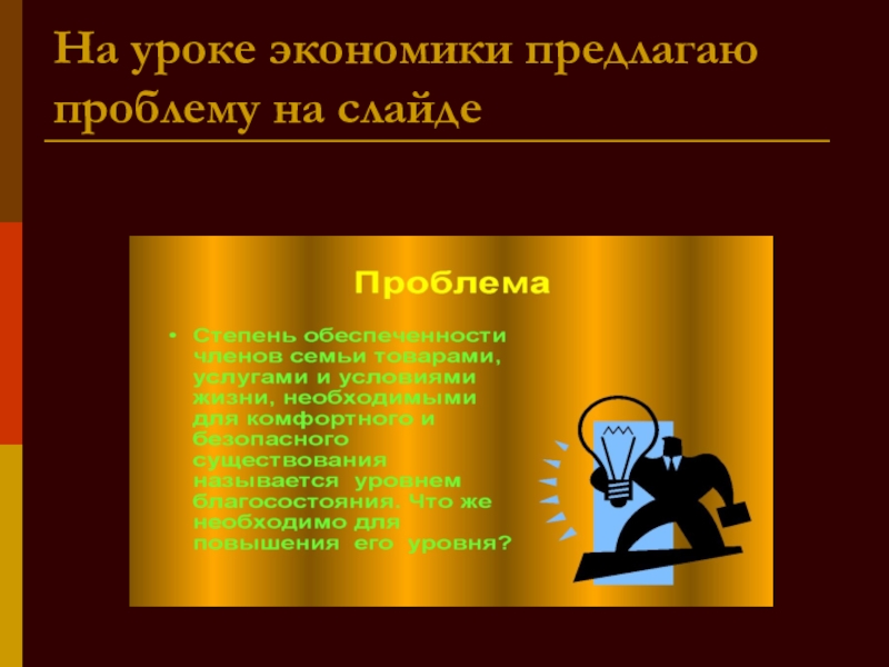 Слайд 16На уроке экономики предлагаю проблему на слайде