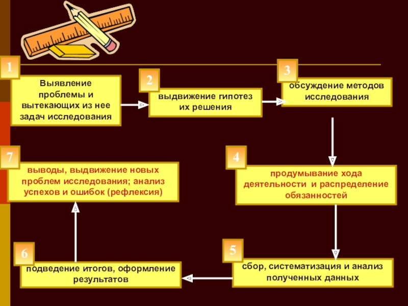 Слайд 21Выявление проблемы и вытекающих из нее задач исследования
