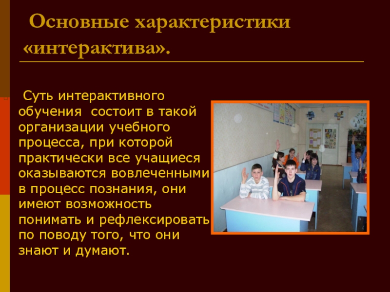 учебного процесса, при которой практически все учащиеся оказываются вовлеченными в процесс познания, они имеют возможность понимать и рефлексировать по поводу того, что они знают и думают.