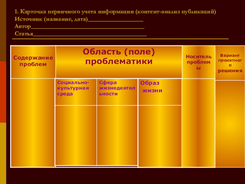 Слайд 301. Карточка первичного учета информации (контент-анализ публикаций)