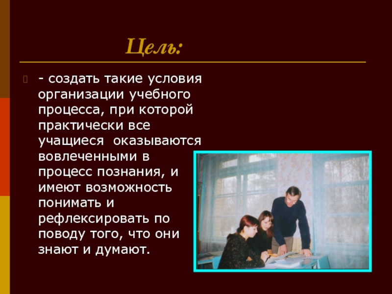 такие условия организации учебного процесса, при которой практически все учащиеся оказываются вовлеченными в процесс познания, и имеют возможность понимать и рефлексировать по поводу того, что они знают и думают.