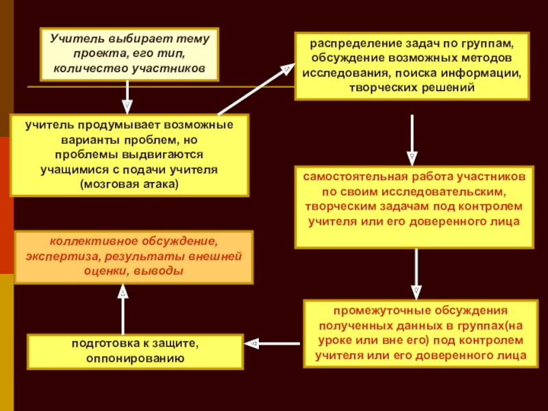 Слайд 22Учитель выбирает тему проекта, его тип, количество участников