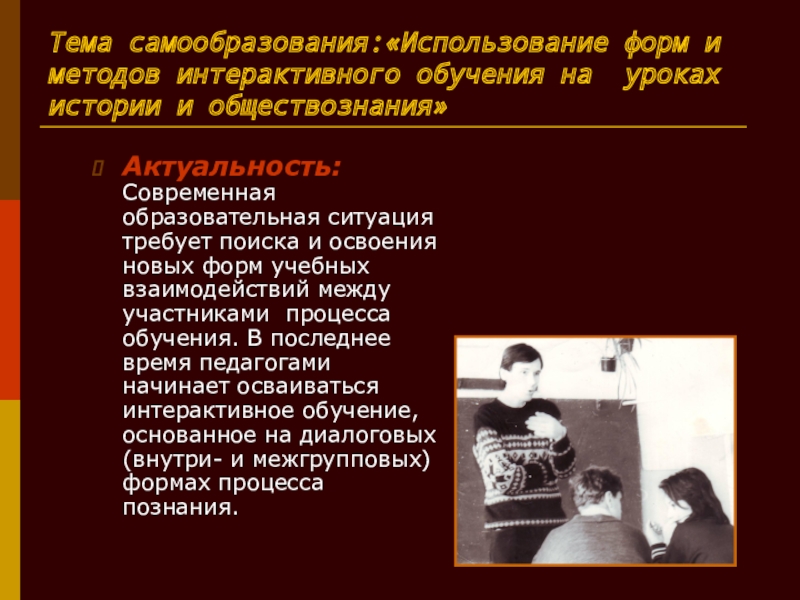 Тема самообразования:«Использование форм и методов интерактивного обучения на уроках истории и