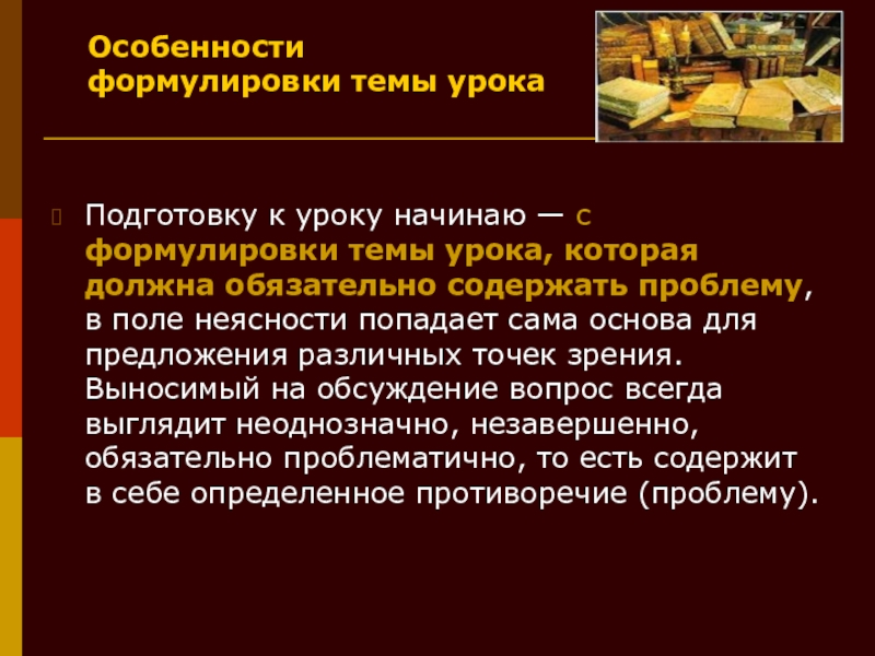 Подготовку к уроку начинаю — с формулировки темы урока, которая должна