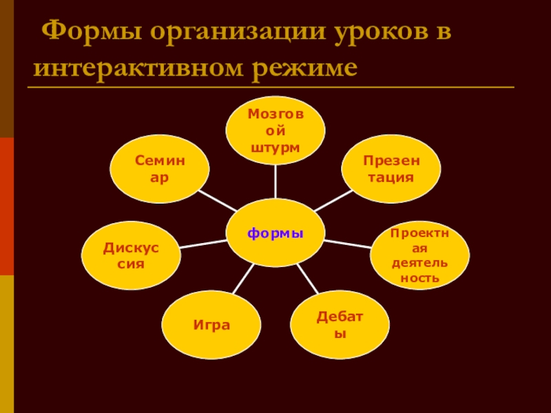 Слайд 13 Формы организации уроков в интерактивном режиме