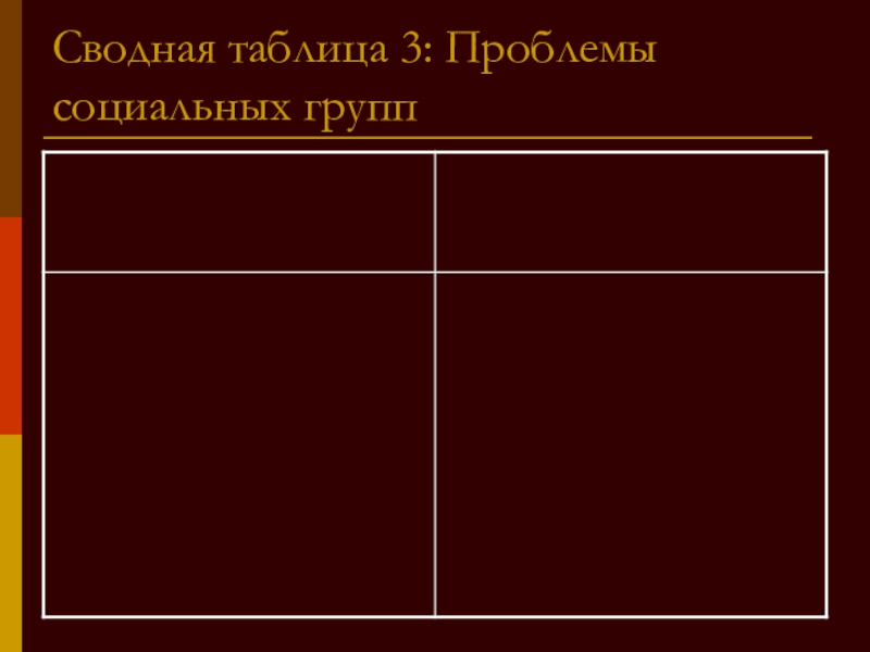 Слайд 33Сводная таблица 3: Проблемы социальных групп