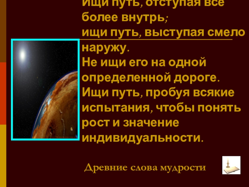 Ищи путь, пробуя всякие испытания, чтобы понять рост и значение индивидуальности.