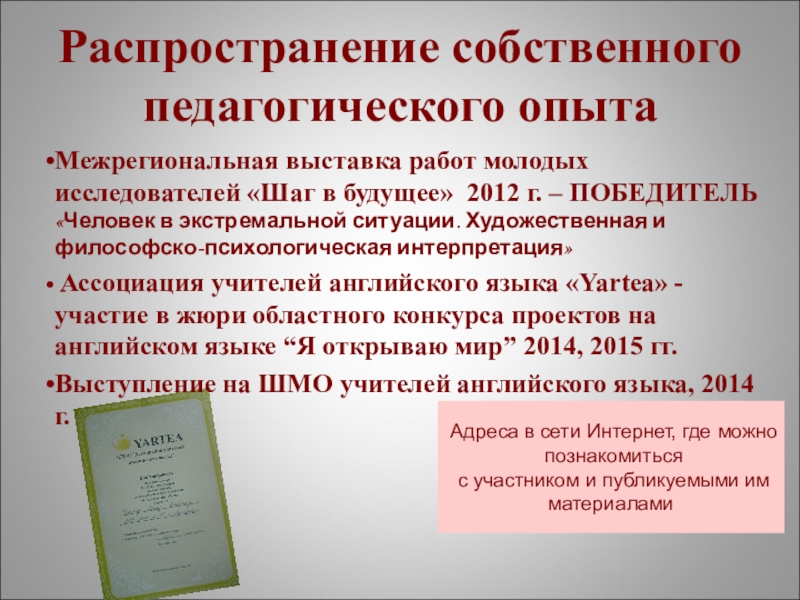 «Учитель английского языка и МХК»,