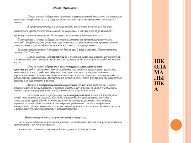 ШКОЛА МАЛЫШКА