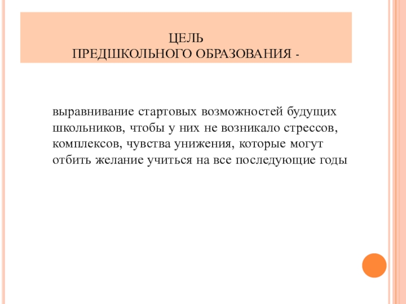 ПРЕДШКОЛЬНОГО ОБРАЗОВАНИЯ –