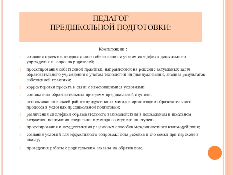 создания проектов предшкольного образования с учетом специфики дошкольного учреждения
