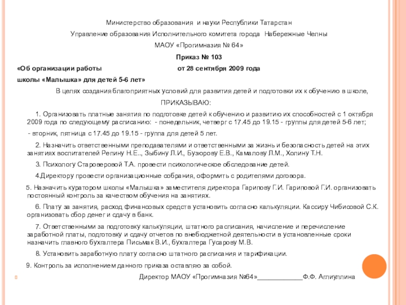 Директор МАОУ «Прогимназия №64»____________Ф.Ф. Аглиуллина