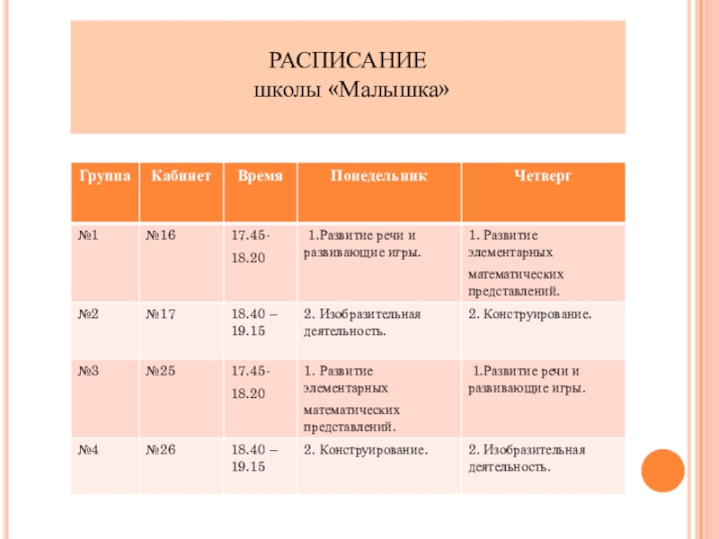 расписание школы «Малышка»