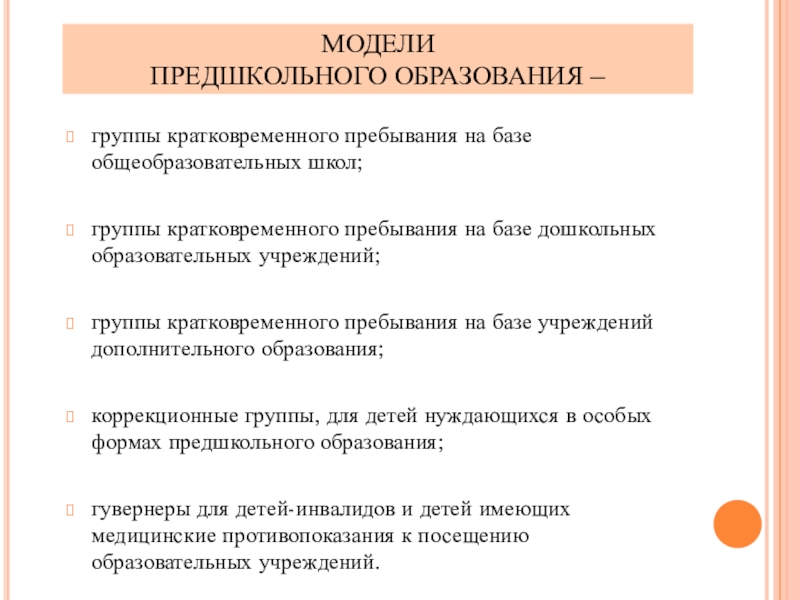 пребывания на базе дошкольных образовательных учреждений;