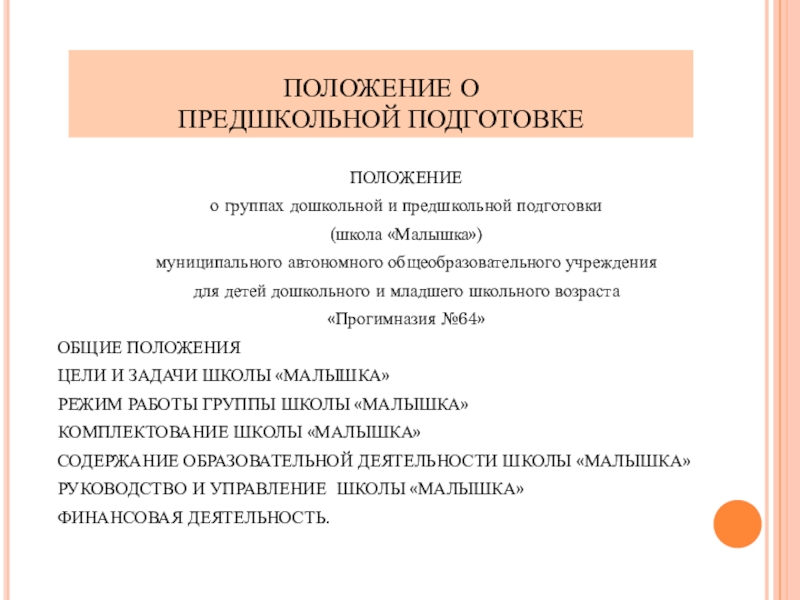 положение о группах предшкольной подготовки