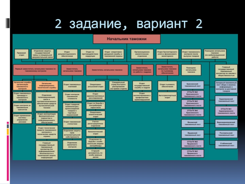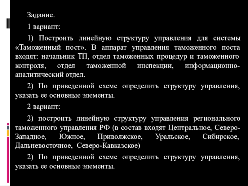 2) построить линейную структуру управления регионального таможенного управления РФ (в состав входят Центральное, Северо-Западное, Южное, Приволжское, Уральское, Сибирское, Дальневосточное, Северо-Кавказское)
