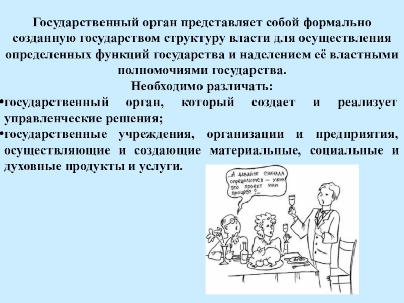 Слайд 6Государственный орган представляет собой формально созданную государством структуру власти для осуществления