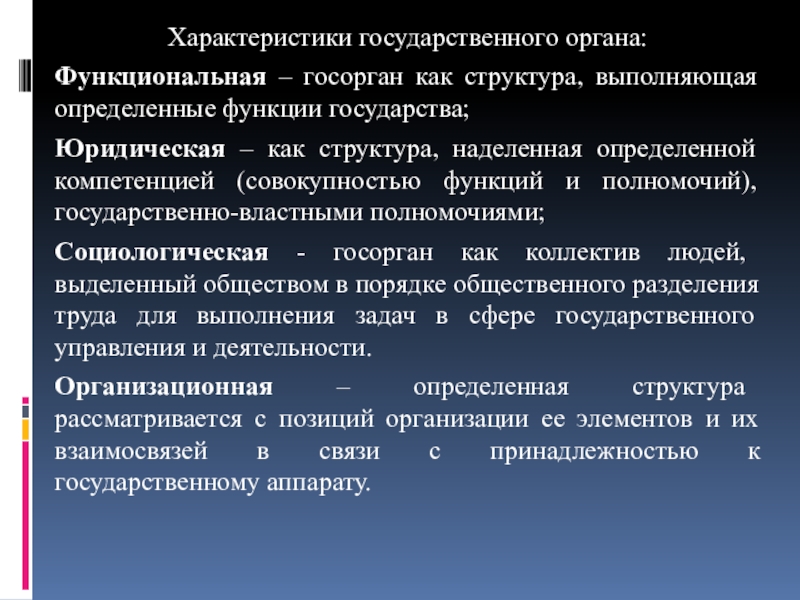 Слайд 5Характеристики государственного органа: