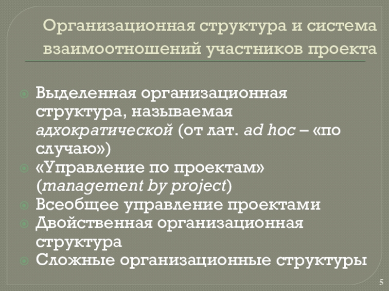 Слайд 5Организационная структура и система взаимоотношений участников проекта