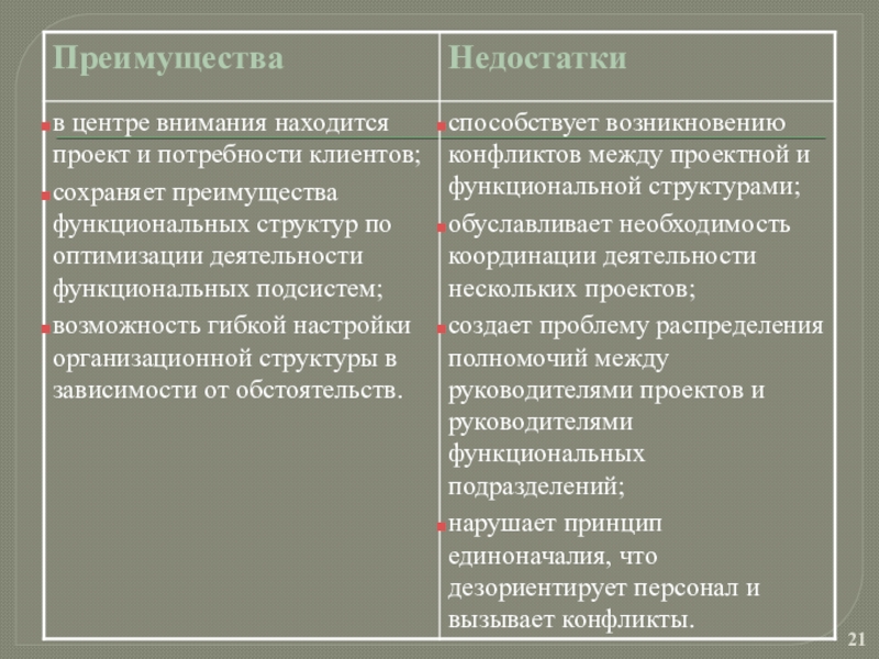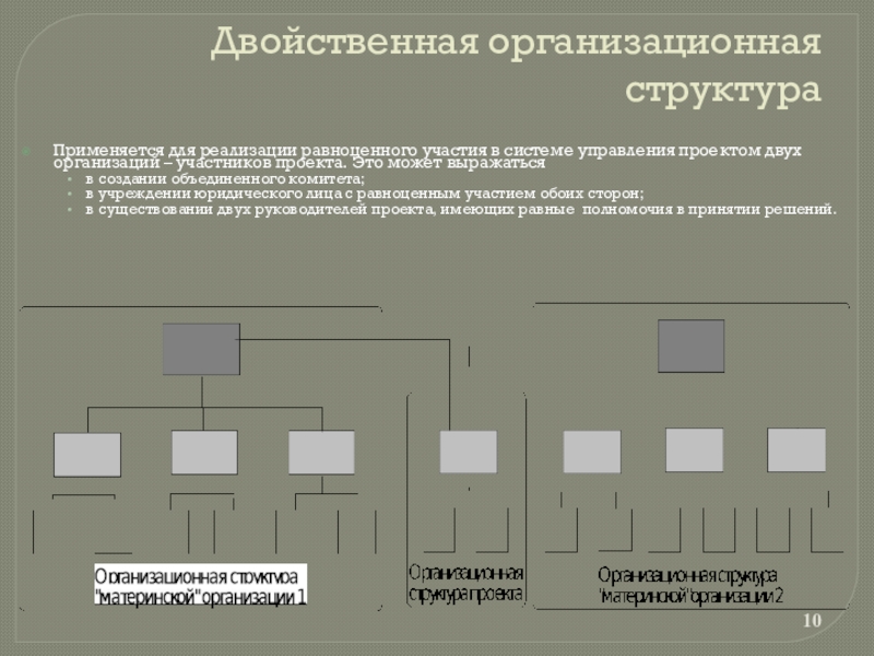 в существовании двух руководителей проекта, имеющих равные полномочия в принятии решений.