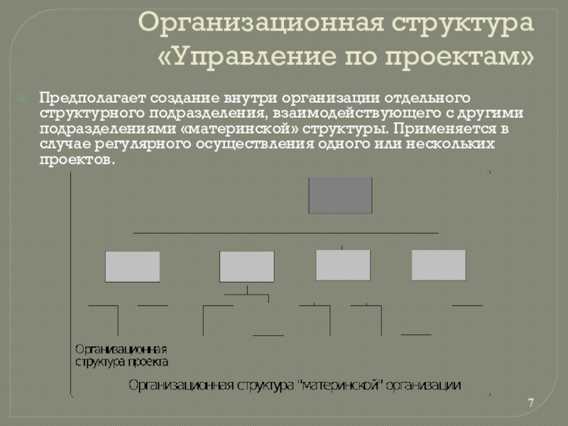 подразделения, взаимодействующего с другими подразделениями «материнской» структуры. Применяется в случае регулярного осуществления одного или нескольких проектов.