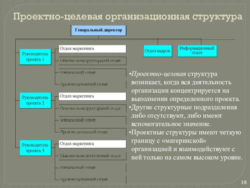 Проектно-целевая структура возникает, когда вся деятельность организации концентрируется на