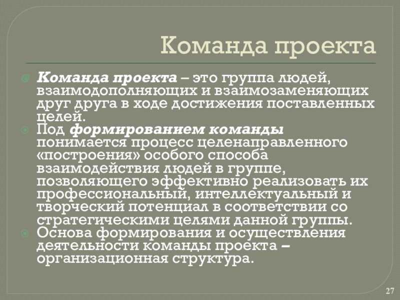 Команда проекта – это группа людей, взаимодополняющих и взаимозаменяющих друг