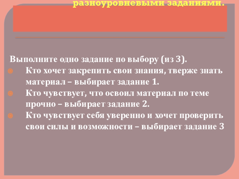Кто чувствует, что освоил материал по теме прочно – выбирает задание 2.