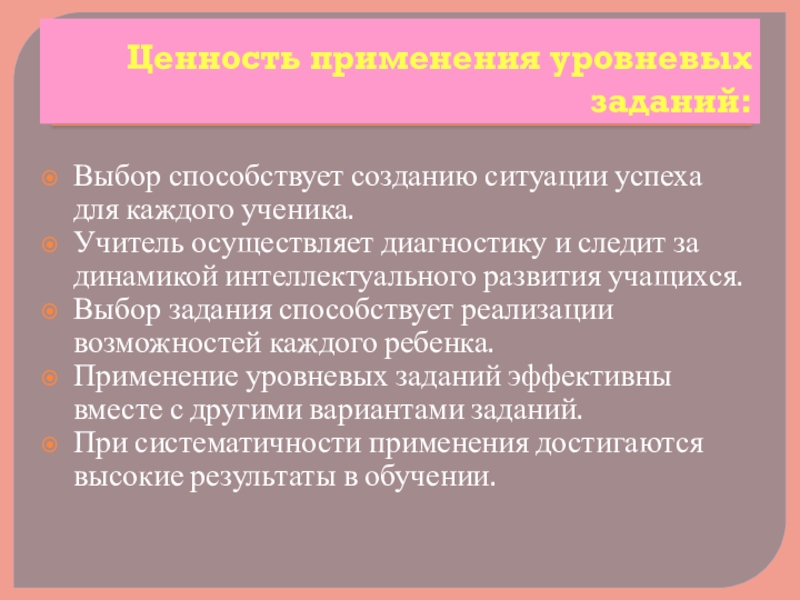Слайд 9Ценность применения уровневых заданий: