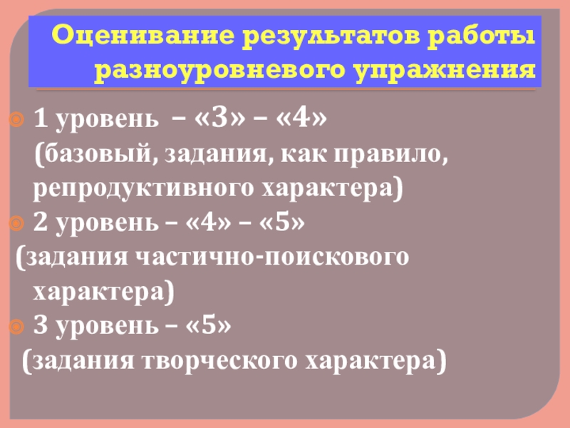 Слайд 12Оценивание результатов работы разноуровневого упражнения
