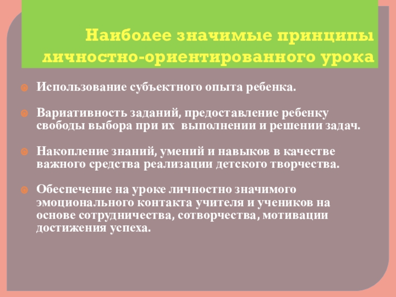 Слайд 4Наиболее значимые принципы личностно-ориентированного урока