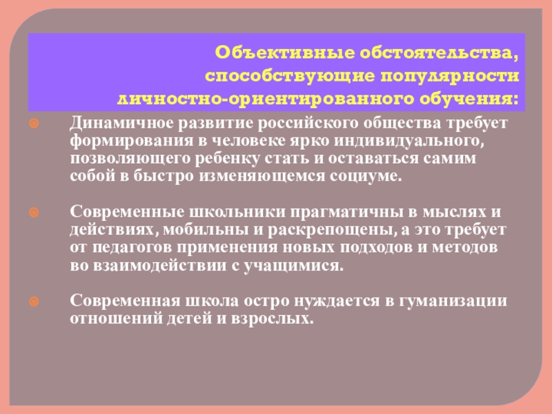 Личностно-ориентированное обучение способствует развитию