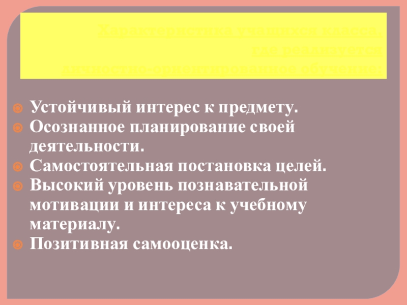 личностно-ориентированного обучения: