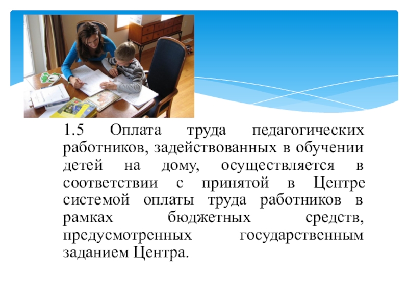 Слайд 61.5 Оплата труда педагогических работников, задействованных в обучении детей на дому,